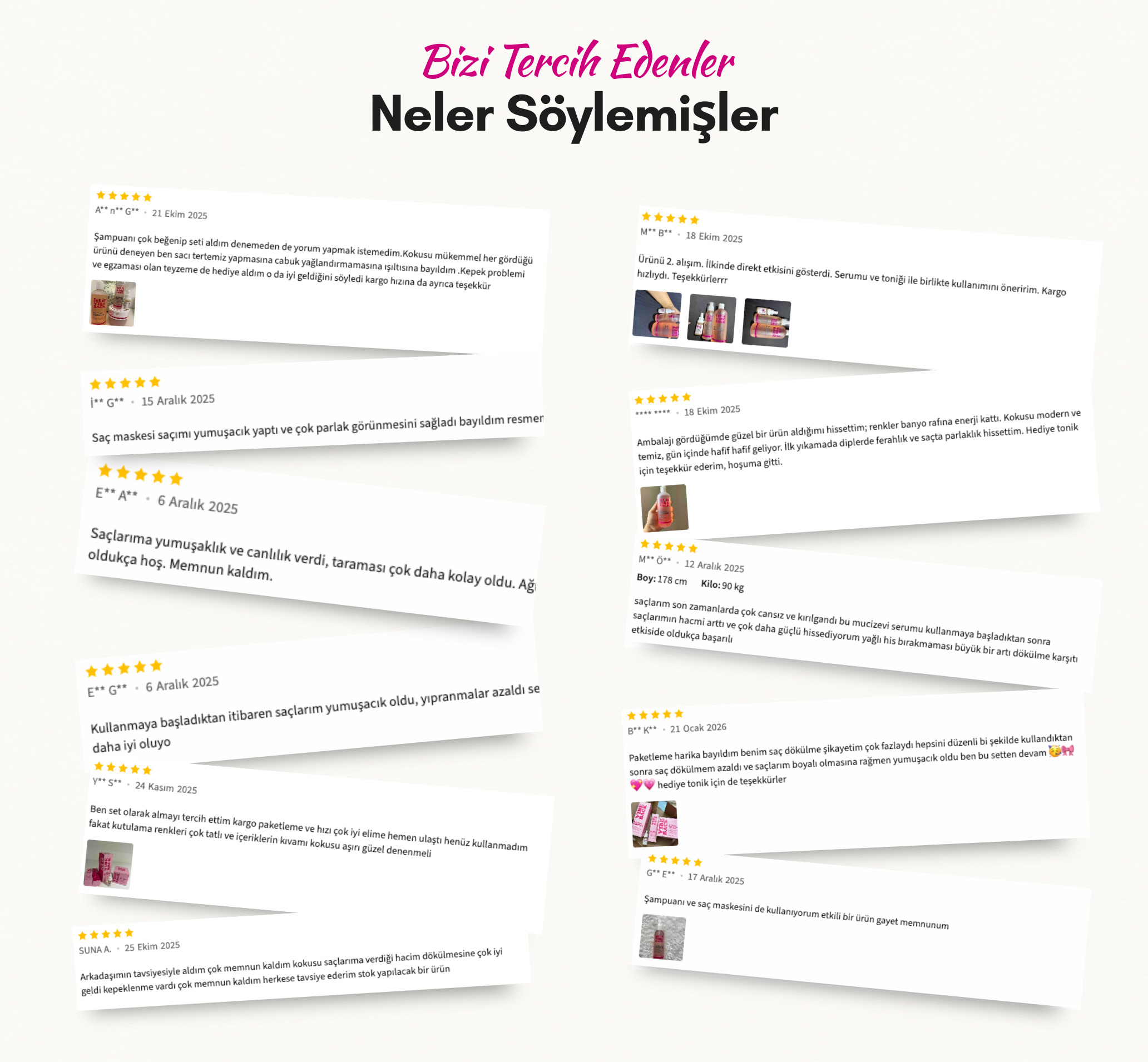 •  Saç Maskesi: 275 ml – Yıpranmış saçlar için yoğun besleyici bakım ve arınma hissi.